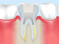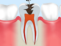 - 根管治療とは、神経までむし歯に侵された場合に行う治療です。根管とは歯の中にある神経(歯髄)が通っている細い管のこと。